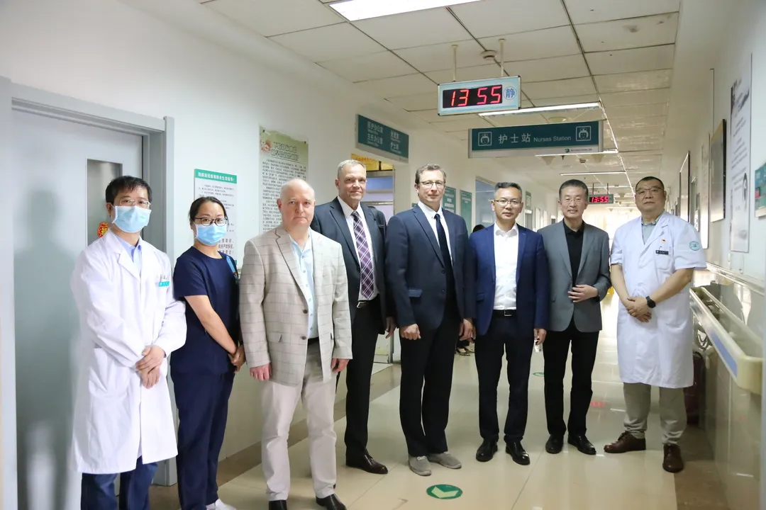 6月6日下午,俄罗斯JSC "NextGen"医药专家,下诺夫哥罗德市列宁大街铁路医院静脉内科医生、血管外科医生、脉管学医生一行到中医大二院参观交流,院长朱路文、周围血管病科主任郭伟光以及部分行政科室负责人陪同参观。