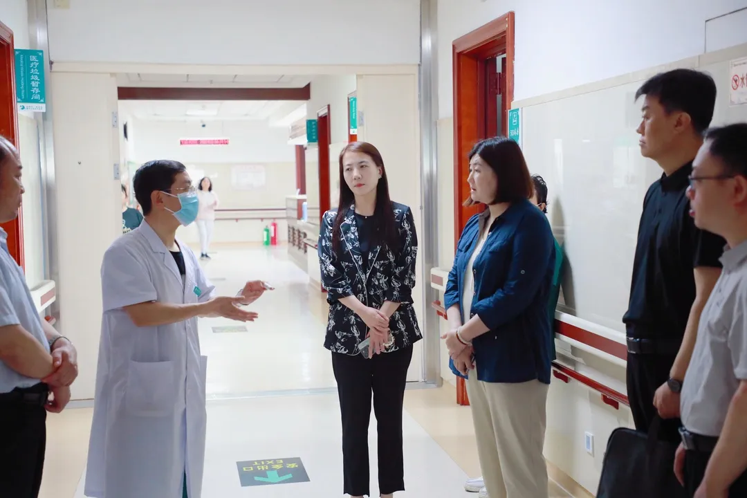 座谈结束后,调研团一行先后到门诊楼、针灸科九病房、针灸科二病房、成人康复中心、儿童康复中心、重症康复科二病房实地参观。期间,袁晶与各临床科室负责人进行了深入交流,详细了解了科室特色技术、医疗设备及中医药的使用情况。