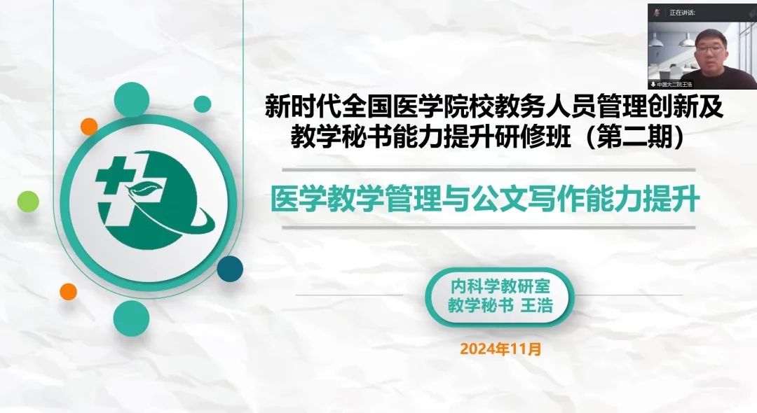 为充分发挥教师教学培训的辐射带动作用,11月20日,第二临床医学院举办赋能提升卓越师资培育计划专题培训会(线上),邀请参加“新时代全国医学院校教务人员管理创新及教学秘书能力提升研修班(第二期)”的教师代表谷栩萌、王浩,结合自身教学内容,就临床教学管理、医学教学管理和公文写作能力提升等方面同与会教师进行交流。