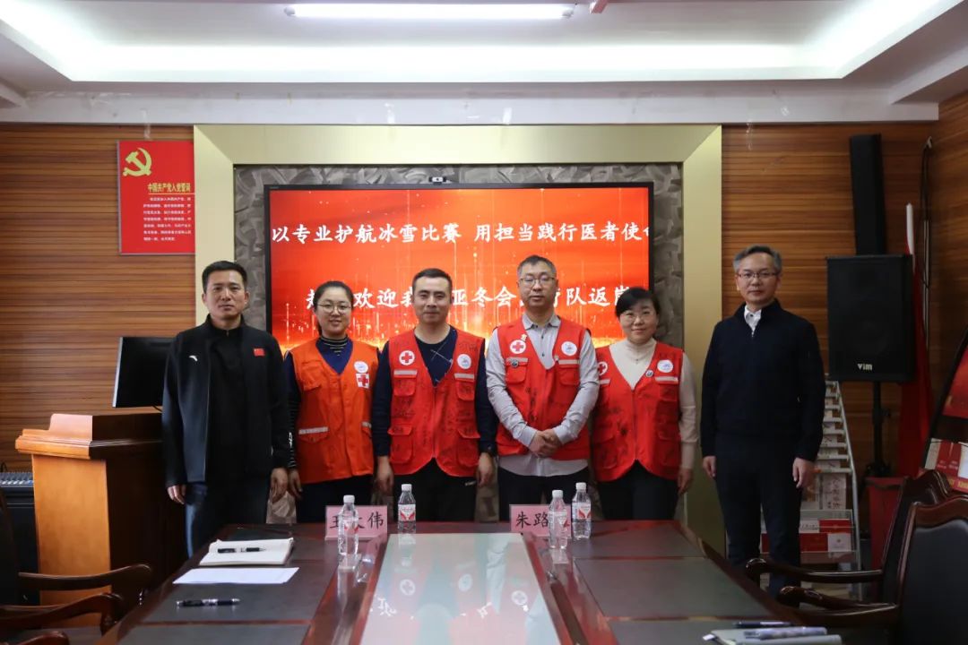 2月20日,中医大二院六楼会议室内洋溢着热烈而温馨的氛围,医院为圆满完成亚冬会冰雪比赛医疗保障任务的医疗队举办了欢迎仪式,欢迎他们荣耀返岗。此次欢迎仪式不仅是对医疗队辛勤付出的肯定,更是对他们用专业和担当践行医者使命的崇高敬意。院领导王大伟、朱路文、冷德生和陈会君以及相关职能科室负责人参加了欢迎仪式。